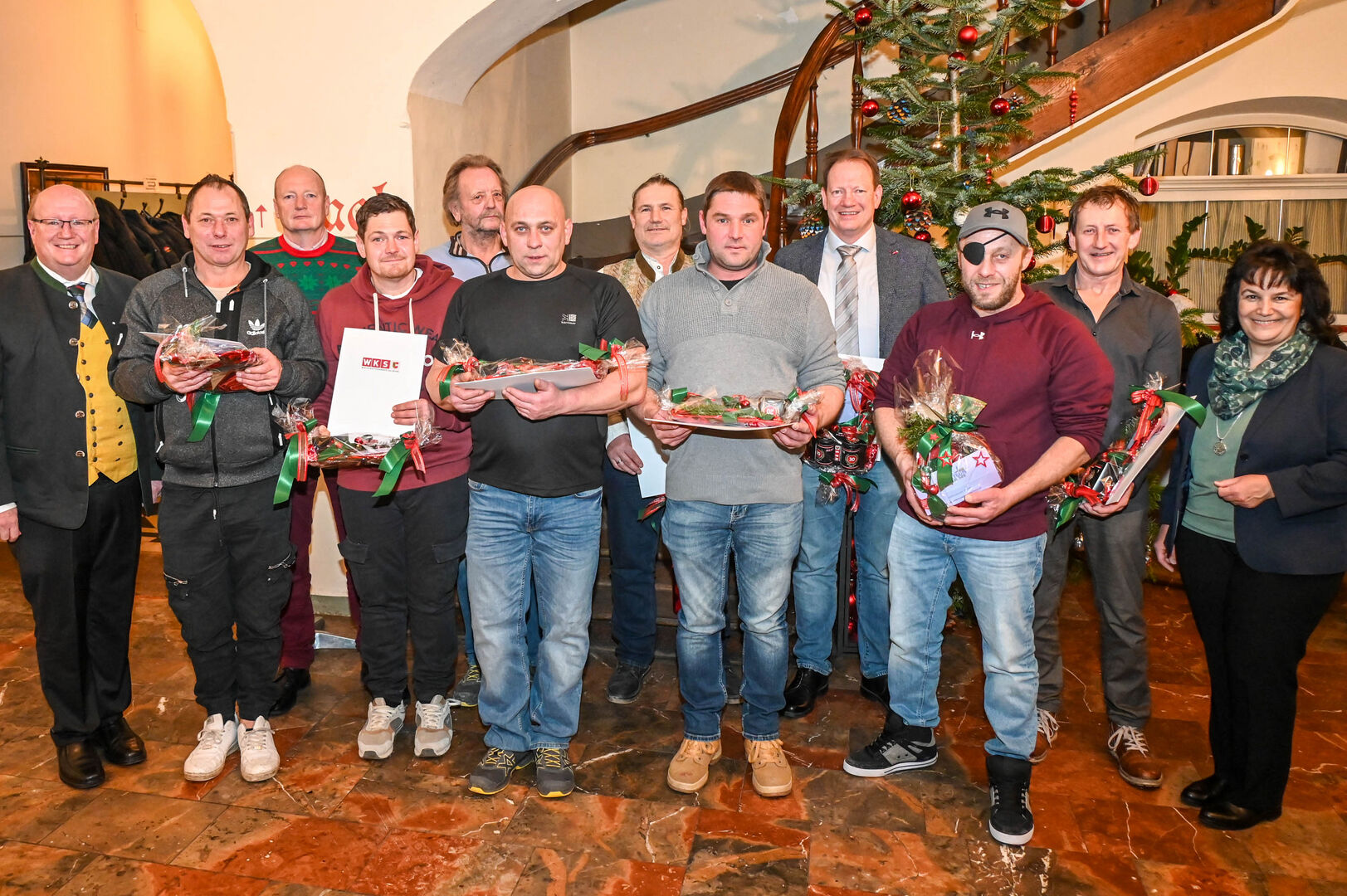 Trotz des regnerischen Wetters ließen wir uns den Glühwein und die Maroni schmecken. Auch heuer durften wir wieder langjährige Mitarbeiter ehren, die ihr 10, 20, 25 und 30 jähriges Firmenjubiläum feierten, sie wurden mit einer Urkunde und einem Geschenk der Wirtschaftskammer Salzburg für ihre langjährige Firmenzugehörigkeit ausgezeichnet. Nach dem ausgezeichneten Essen folgte im Anschluss noch das Weihnachtsschätzspiel.